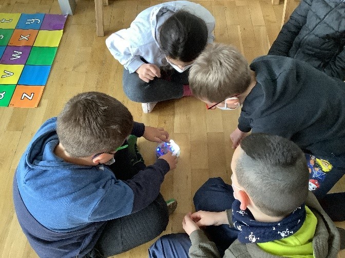 Zum Abschluss der Reihe haben wir unser Wissen mit der Hilfe von BlueBots gefestigt. Wir haben die kleinen Dinger programmiert, sodass sie Wege im Klassenraum oder auf einer Matte mit Buchstaben abfahren konnten. Wir haben viel Neues gelernt und hatten großen Spaß!