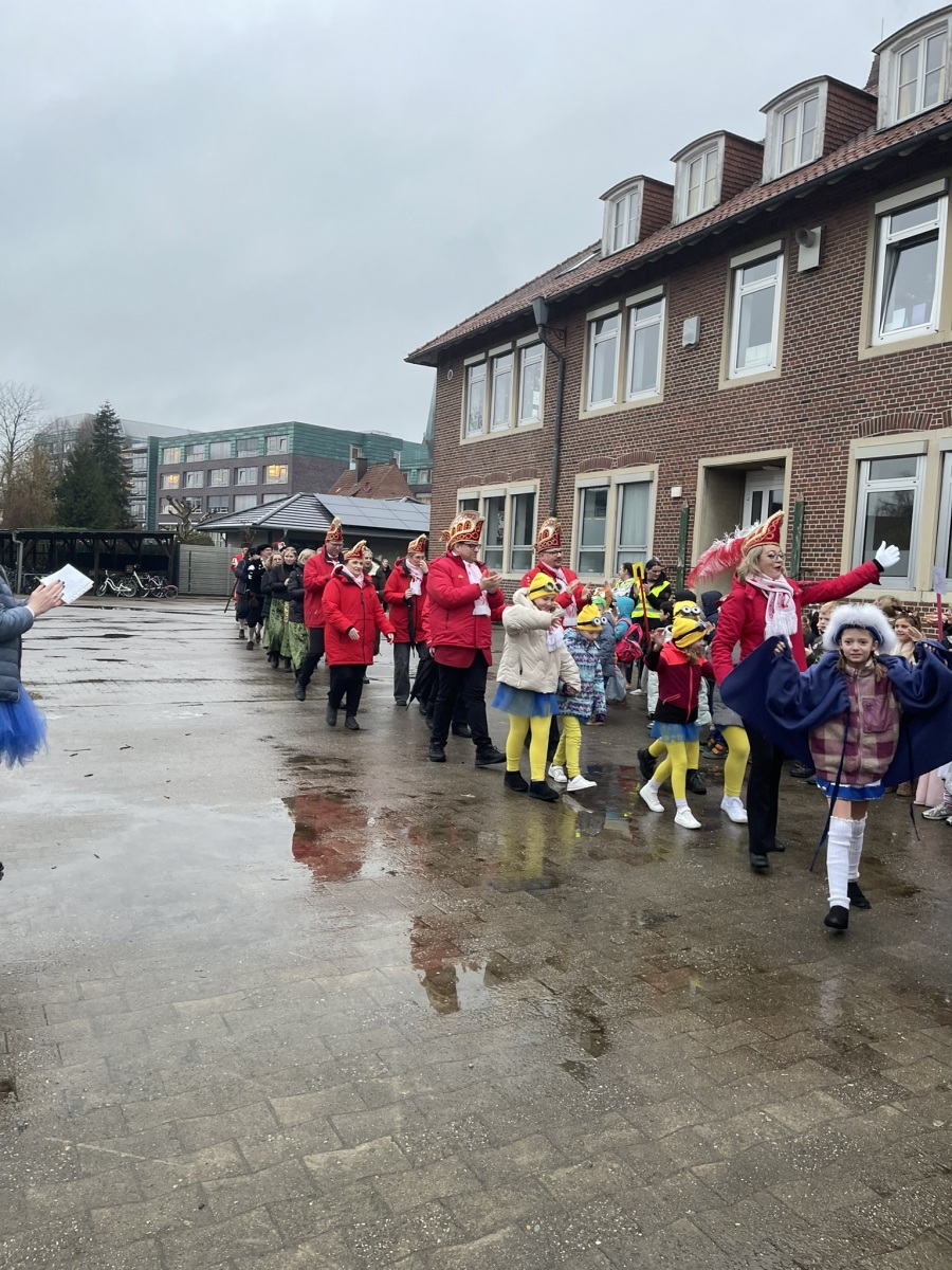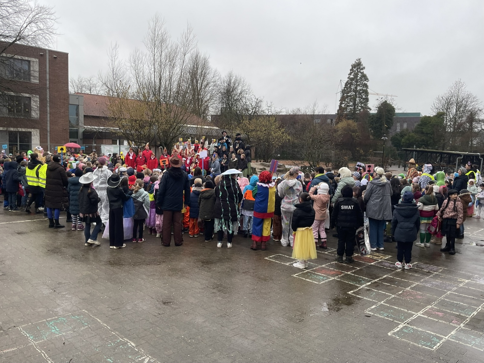 Nach einem kurzweiligen närrischen Programm mit Ordensverleihung startete in diesem Jahr ein ganz besonderer Umzug: Gemeinsam zog die Schulgemeinschaft nicht nur über das Schulgelände, sondern hinaus in unser Viertel.